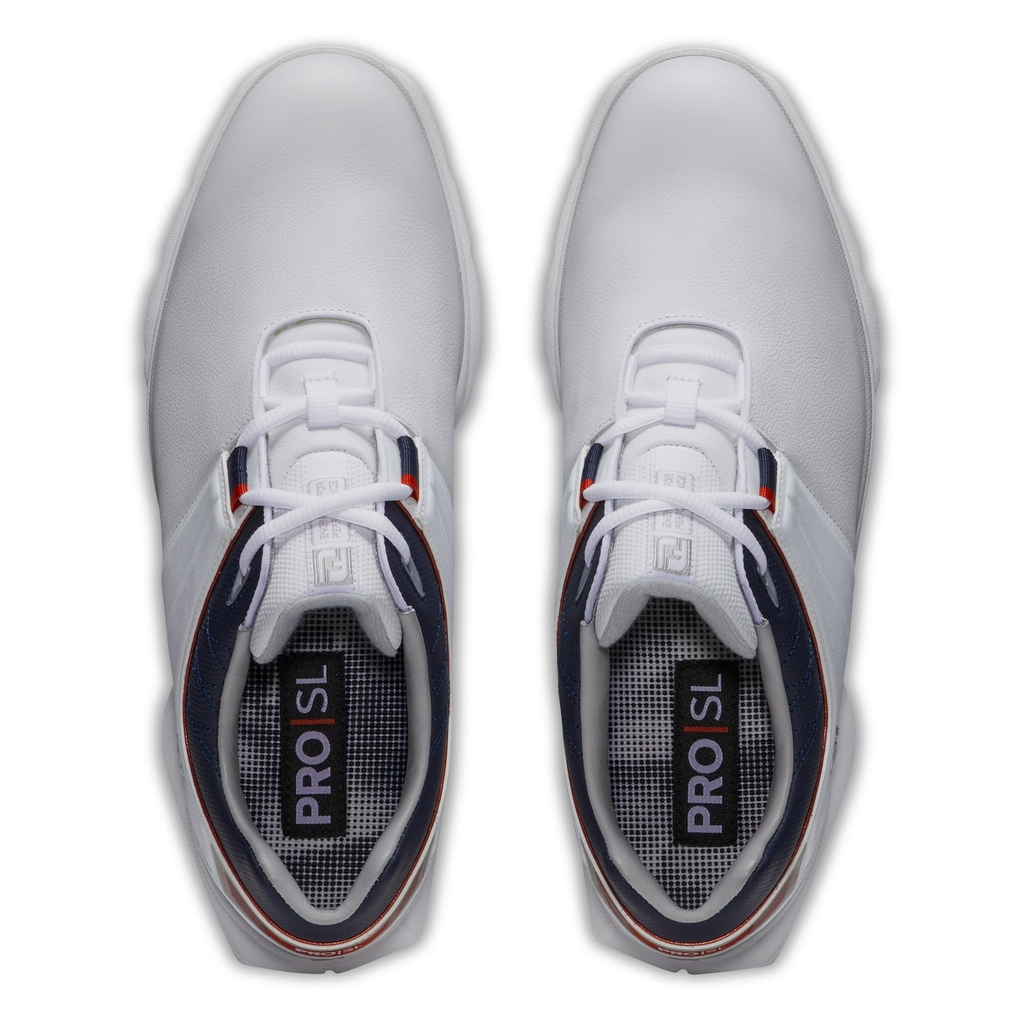 Mens FootJoy Pro SL Golf Shoes. The hottest shoe in golf and on Tour; Features a proprietary, dual density Fine Tuned Foam (FTF) outsole that provides traction in all weather conditions on course, yet a comfortable ride off course.